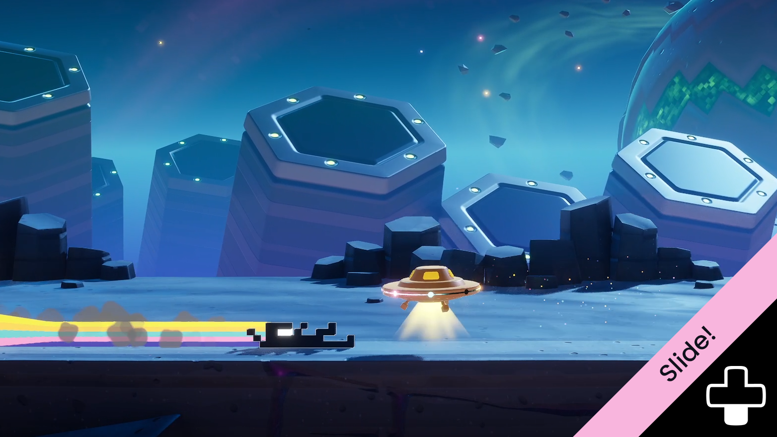 Hold the slide button to slide under low-hanging or low-flying obstacles!